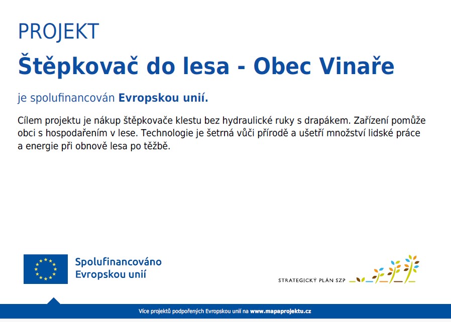 Štěpkovač do lesa pro Obec Vinaře je spolufinancován Evropskou unií.